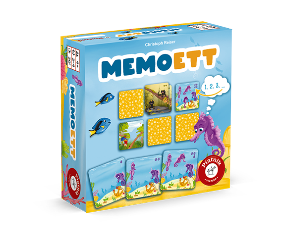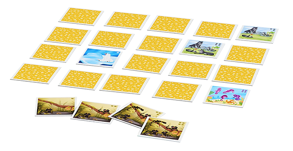 Dieses besondere Memo hat es in sich. Wie der Name schon andeutet, ist es eine Mischung aus Memo und Quartett. Anstatt eines Pärchens wird also eine vierköpfige Tierfamilie gesucht. Noch dazu müssen die vier Plättchen in der richtigen Reihenfolge aufgedeckt werden.