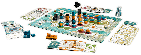 Eine beeindruckende Skyline kennzeichnet die beiden Städte, deren Immobilienmarkt seit jeher heiß umkämpft ist. Immer höher nach oben wachsen die Gebäude, deren Wert oft von ihrer Lage zu den zentralen Wahrzeichen bestimmt wird. So auch im innovativen Deck-Building-Spiel „Project Skyline“, das einen strategischen Wettstreit rund ums Bauen von Hochhäusern und die Entwicklung attraktiver Stadtviertel auf einem großen Spielplan umsetzt. Wer bei „Project Skyline“ clever baut, ist der Konkurrenz immer eine Nasenlänge und häufig sogar ein Stockwerk voraus. Etage für Etage gestalten die Spielenden die Stadt und dürfen dabei auch bereits bestehende Gebäude für sich nutzen. Aber echte Profis wissen: Entscheidend ist nicht nur die Höhe der Immobilien, sondern auch die Lage.